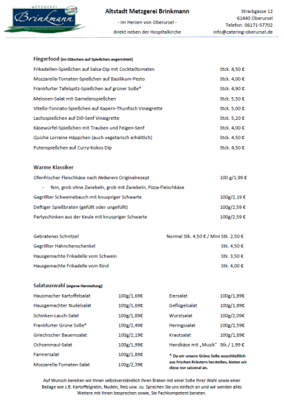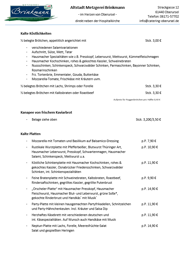 Altstadtmetzgerei Brinkmann Strackgasse 12 61440 Oberursel (Taunus) Email: info@catering-oberursel.de